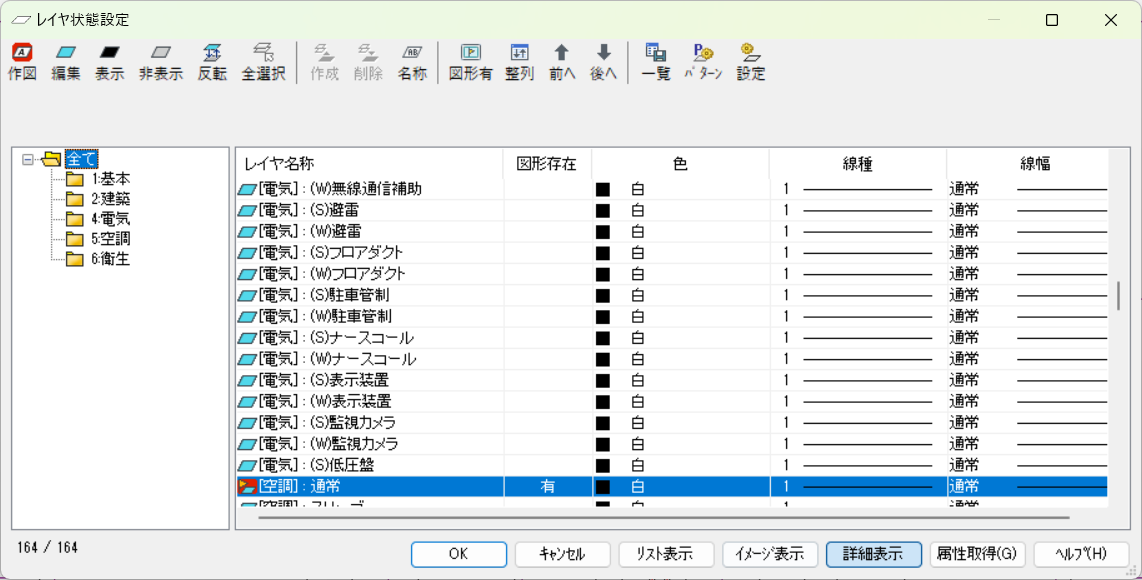シートの表示状態や色などをあらかじめパターンとして登録することができますので、 印刷用、作図用と簡単に図面の切替えが可能です。