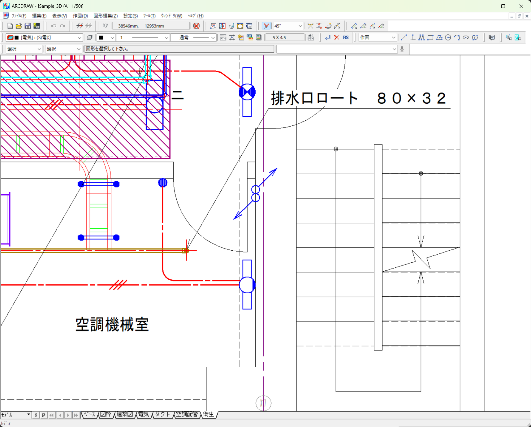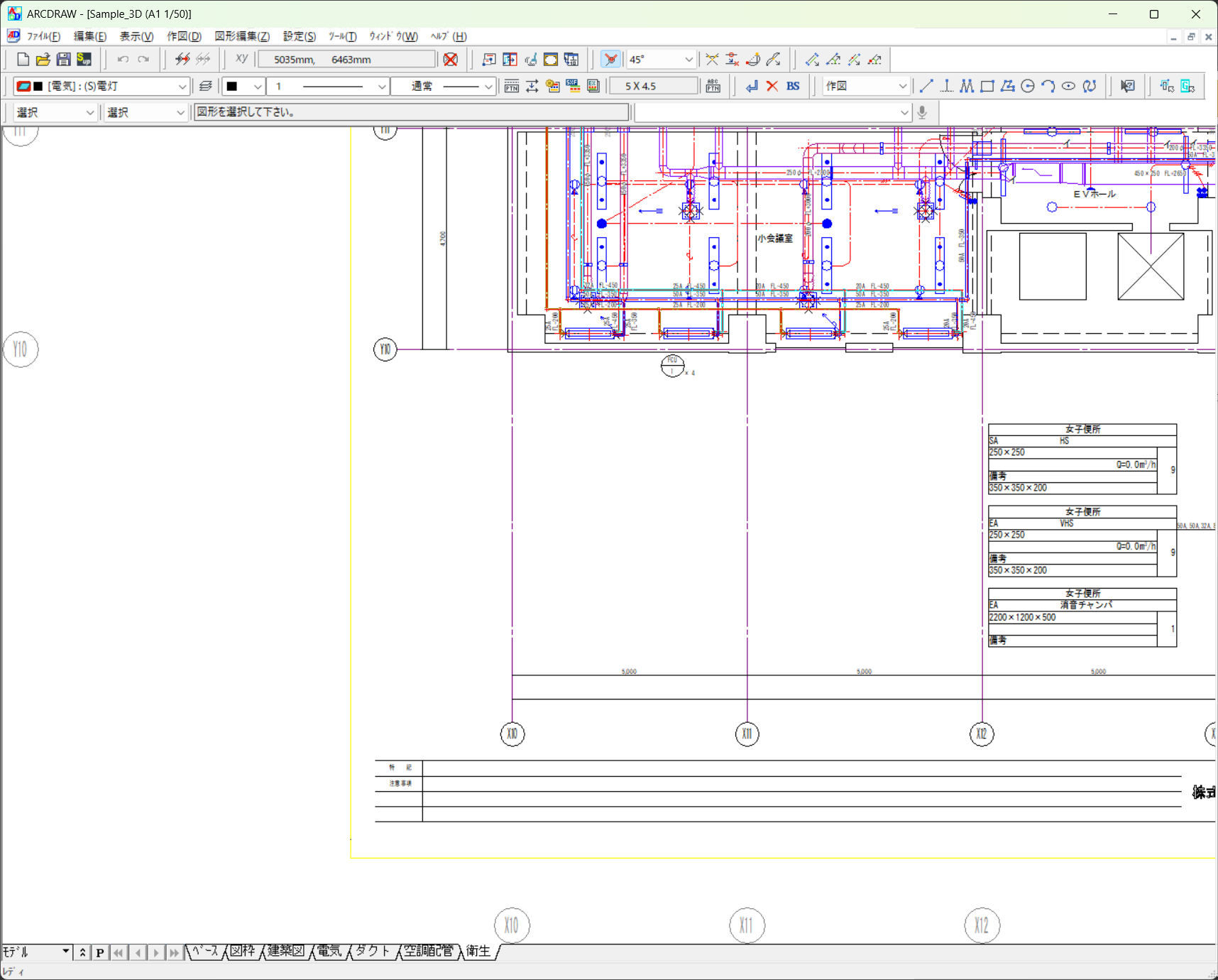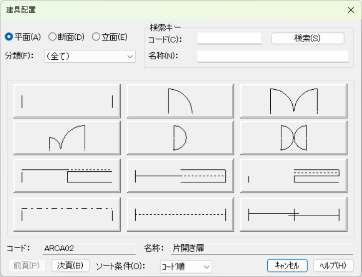 一般的な建具は標準搭載しておりますが、Jw_cadの建具ファイルをARCDRAWの建具ファイルに変換することもできます。