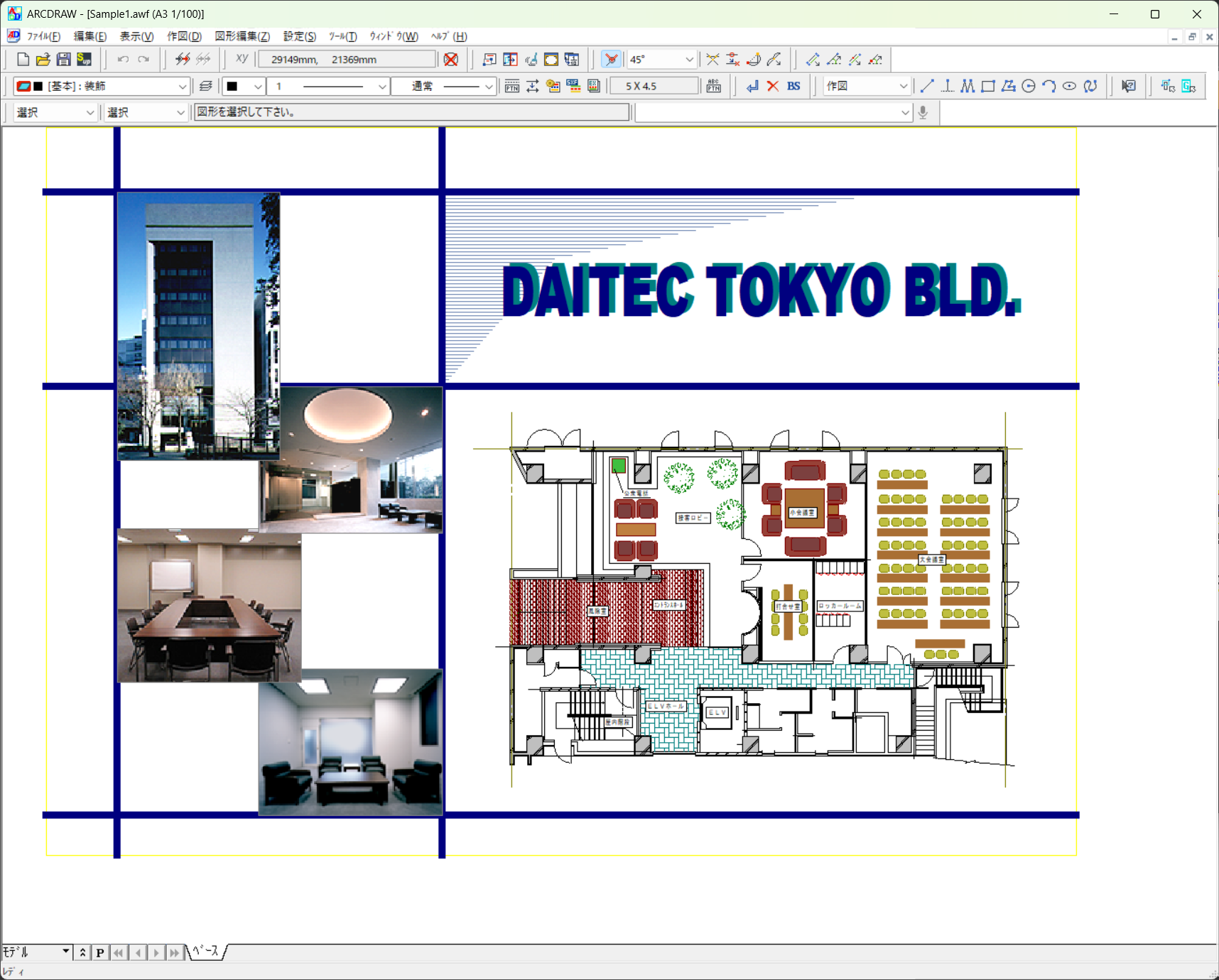 シート機能を利用することで、同一図面内に異縮尺の図形を簡単に作図することができます。