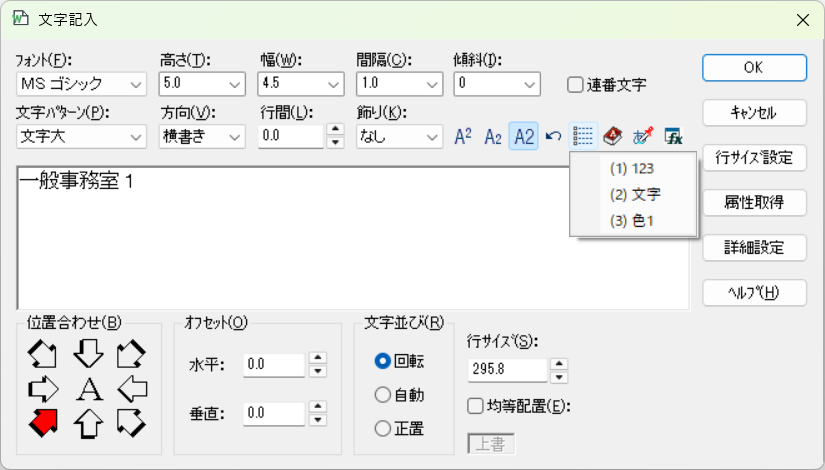 また、文字列の英数部分をカウントアップしながら、連続して作図することもできます。