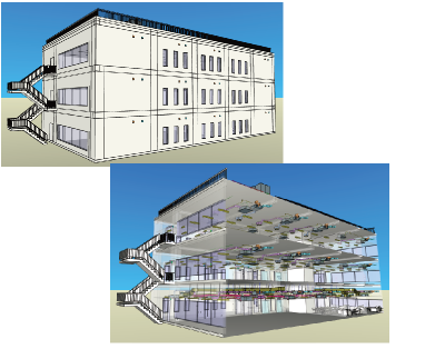 - 建築IFCデータ・設備IFCデータの読込みができ、建築躯体データを再入力する手間なく、設備図面の作成ができます。また、作成した設備データはIFC出力できます。