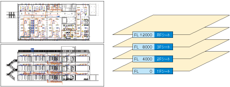 シートの表示/非表示、シートパターンなど従来のシートの操作性を損なうことなく複数フロアのBIMモデルを扱うことができます。