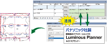 - パナソニック社製「ルミナスプランナー(バージョン7.2以降)」と連携し、指定した部屋図形の照度分布図を作成し、同時に照明器具や計算結果表を作成することができます。
