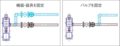 - 機器・器具やバルブ等を固定して、ルート移動できます。